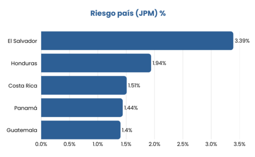 La región adicionalmente se esta beneficiando de un ambiente de bajas tasas de interes y una disminución del riesgo país. Exlcuyendo El Salvador, que es el país con mayor nivel de riesgo país, fruto de un alto nivel de endeudamiento y falta de implementación del plan generado por el FMI, los demás paises estan debajo del 2% de riesgo país, lo cual hace que las tasas internas de los paises se mantengan competitiva y el credito empresarial pueda acceder a tasas más competitivas.